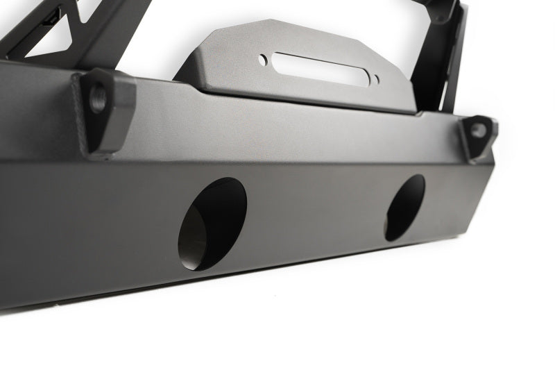 We revamped our popular FS-25 Stubby Jeep Front Bumper, featuring improved micro-texture powder coating and reduced weight. It fits the Wrangler JK, as well as the Wrangler JL & Gladiator JT without the need for a bumper adapter. The plated bull bar was updated to be removable, and features the ability to mount the DV8 Elite 20? Single Row Light Bar, the Rigid SR 20? Light Bar, or the Baja Designs S8 20? Light bar. Its high clearance design is a favorite amongst rock crawlers, in addition to its recovery options. The bumper fits most winch sizes, and the winch plate is removable if you choose not to run a winch. The clevis mounts can take ?? D-ring Shackles, such as our Elite Series D-Rings. Fog light mounts are suitable for OEM 4-bolt 4-inch fog lights, as well as our aftermarket fogs. We also included zip tie tabs for wire management. The FS-25 features a direct fit bolt-on installation.