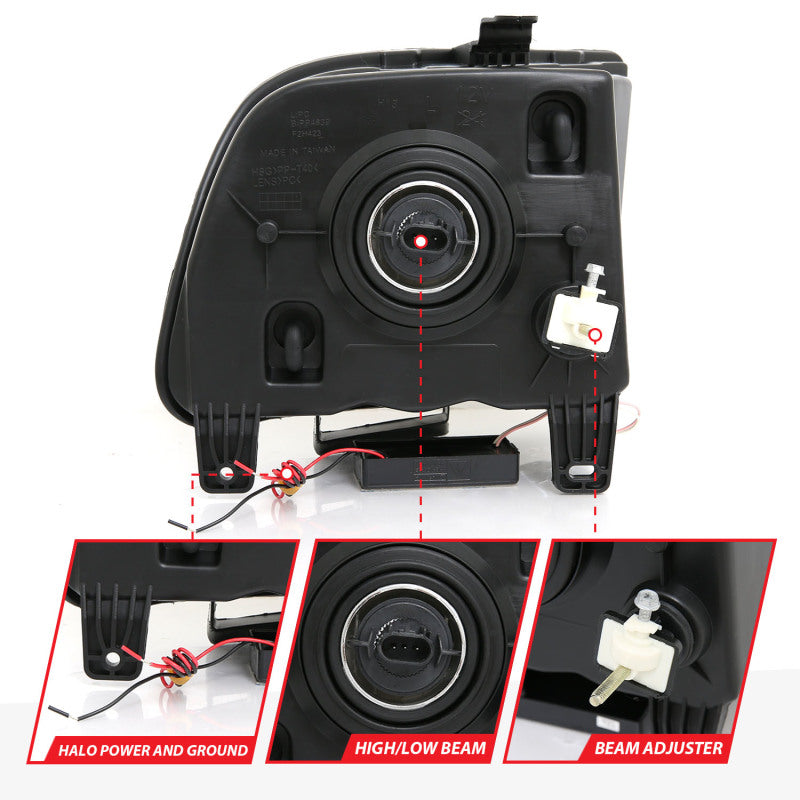 Crystal Headlight Set, w/Halo, Clear Lens, Black Housing, Pair, CCFL, For Use w/Non HID Models Only,...