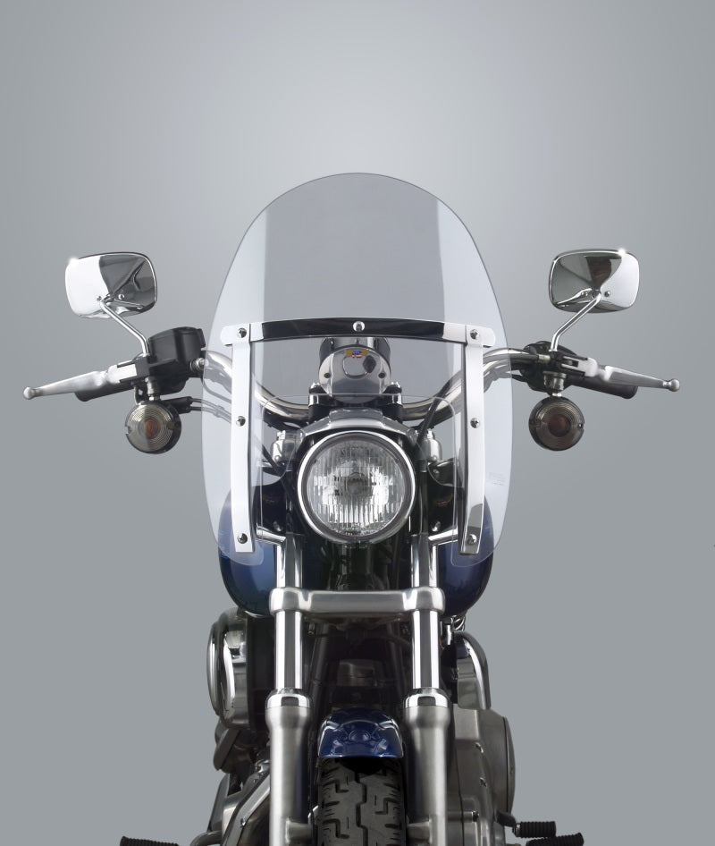 The famous Heavy Duty™ line of superior quality windshields feature Quantum® hardcoated polycarbonate construction, polished chromed steel outer hardware and black epoxy coated inner hardware. Available in two frame widths and six styles to suit any rider and any cruiser motorcycle. Classic style with adjustable center window. Chrome-plated Heavy Duty™ Mount Kits are bike-specific and are sold separately.
