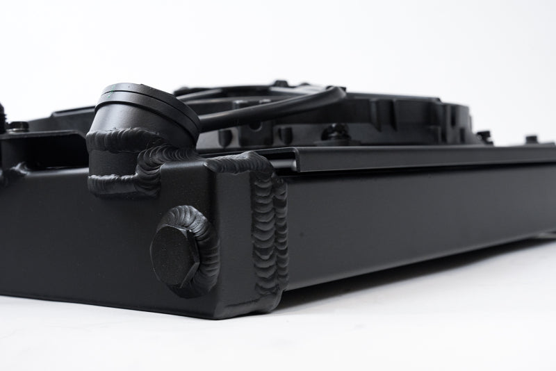 CSF Universal Half Radiator w/-16AN & Slip-On Fittings/12in SPAL Fan & Shroud - Black Finish