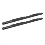 Saddle mounted step pad. Molded oval end caps. Features cradle mounted tubes and no drill installation. Black powder coated mild steel finish. 3 year warranty.